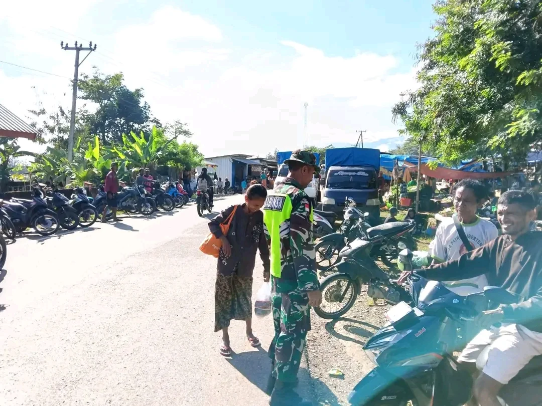 Adalah Babinsa Desa Tohe Koramil 1605-08/Haekesak, Sertu Dominggus Pereira, yang turun langsung memantau aktivitas pasar. Ia tidak hanya berdiri sebagai pengawas, tetapi hadir menyapa, berdialog, dan perlahan menata ulang kebiasaan yang sempat abai—terutama soal parkir kendaraan yang kerap memadati badan jalan.