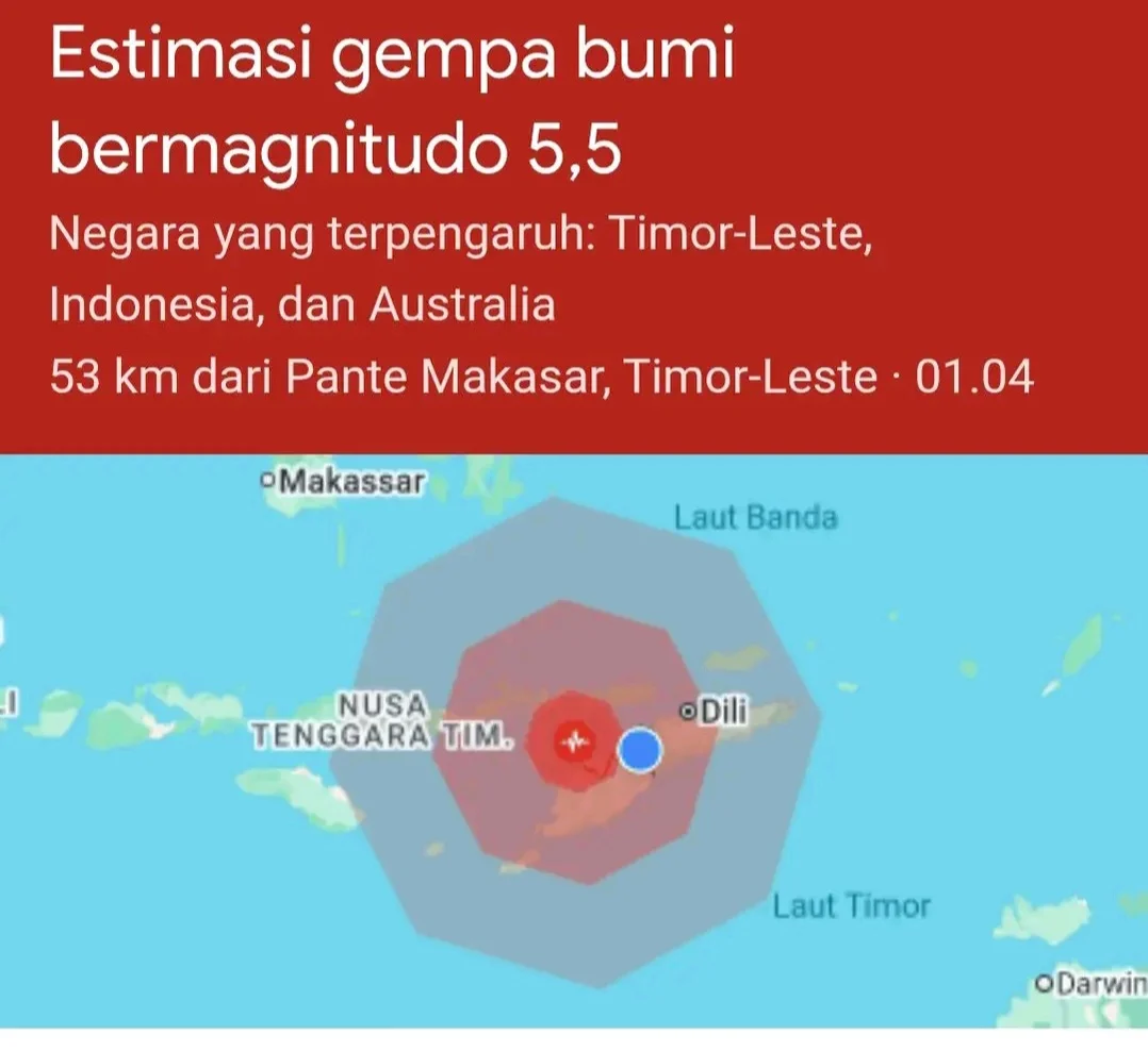 Data awal dari Android Earthquake Alerts System mencatat, pusat gempa berada di kedalaman laut sekitar 10–20 kilometer, berpotensi dirasakan hingga wilayah Timor-Leste, bagian barat laut NTT, bahkan pesisir utara Australia.