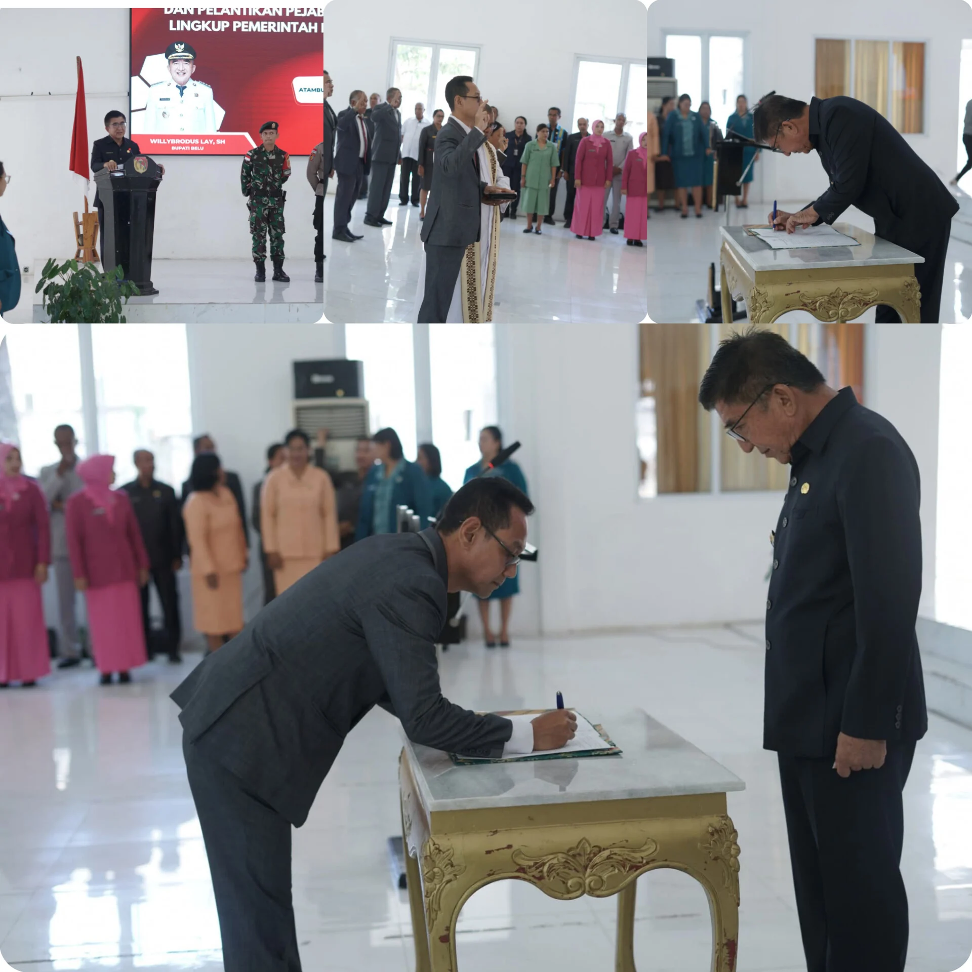 Satu per satu nama disebut, langkah maju diiringi tepuk tangan hangat. Di hadapan Bupati Belu, para pejabat mengucap sumpah—bukan sekadar formalitas, melainkan ikrar untuk menjaga marwah pelayanan publik di wilayah yang berbatasan langsung dengan Timor Leste itu.