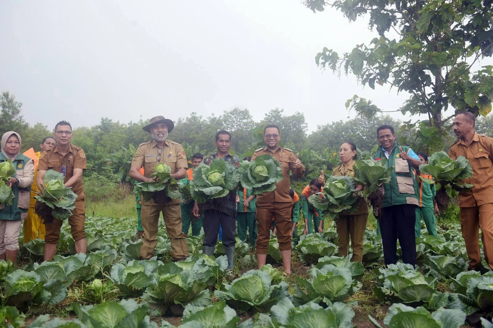 Di akhir kegiatan, Wakil Bupati Belu bersama Plt. Kadis Pertanian, para PPL, dan anggota kelompok tani melakukan panen kol secara simbolis, lalu berdiskusi mengenai pengembangan pertanian dan dukungan pemerintah ke depan.