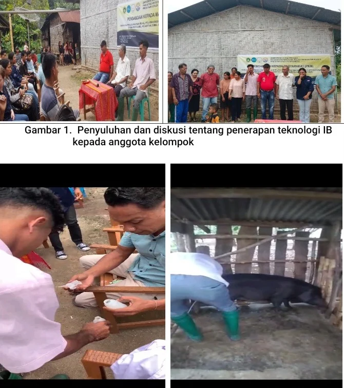 Pada kesempatan itu, dua ekor induk babi milik peternak yang sudah teramati birahi langsung dijadikan contoh aplikasi IB.