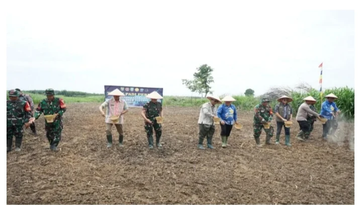 Pagi itu, sawah yang baru dibuka masih beraroma tanah basah. Lengan berseragam loreng tampak tak segan turun berlumpur, menggenggam bibit padi dan menancapkannya ke petak-petak lahan yang masih perawan. Bagi mereka, ini bukan sekadar menanam padi — ini tentang menanam masa depan.
