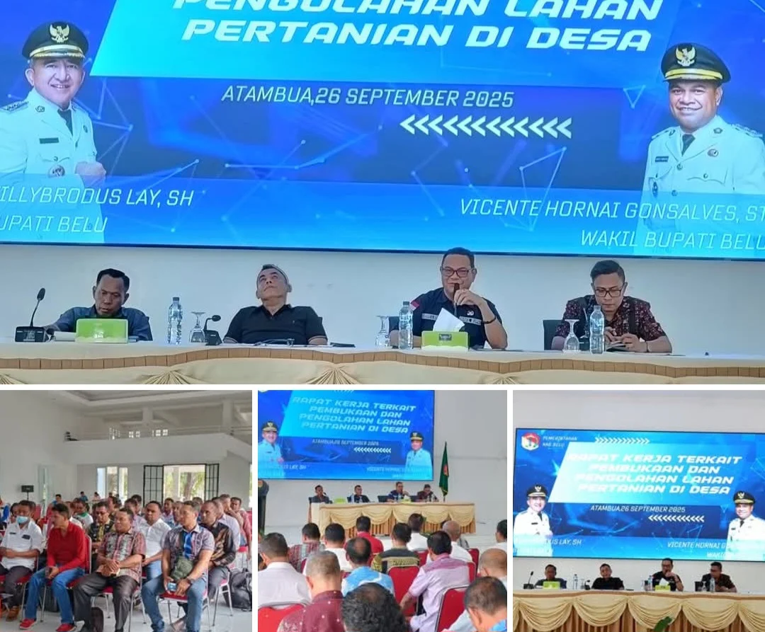ATAMBUA, |BELUPOS.Com) – Menata tanah, mengolah lahan, dan menanam harapan. Itulah semangat yang mengalir dalam Rapat Kerja Pembukaan dan Pengolahan Lahan Pertanian Desa yang dipimpin langsung Wakil Bupati Belu, Vicente Hornai Gonsalves, S.T., di Gedung Wanita Betelalenok, Jumat (26/9/2025).